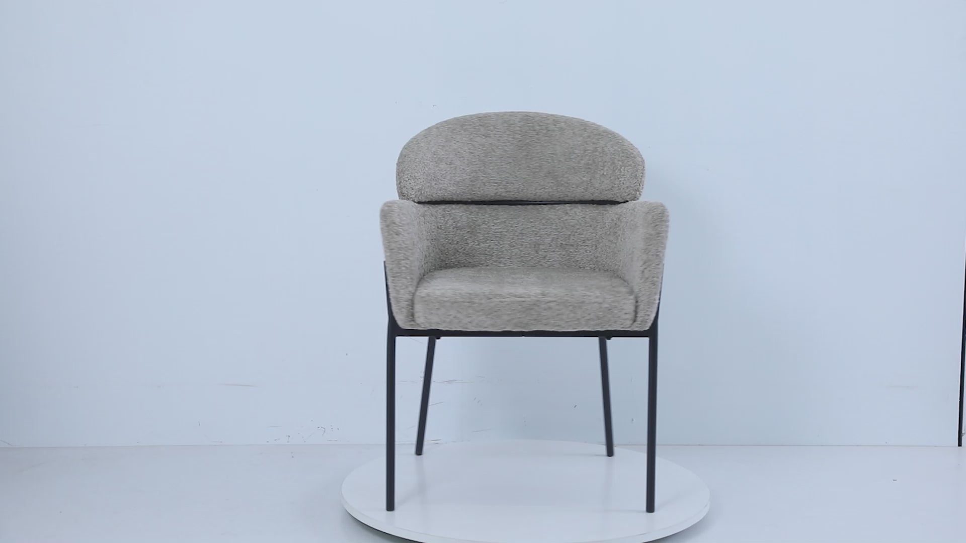De Sofia is ontworpen met een comfortabele kuipzitting en afgeronde armleuningen die perfect aansluiten op het lichaam. Het slanke, zwarte metalen onderstel zorgt voor een mooi contrast en een stabiele basis, waardoor de stoel zowel praktisch als verfijnd oogt.